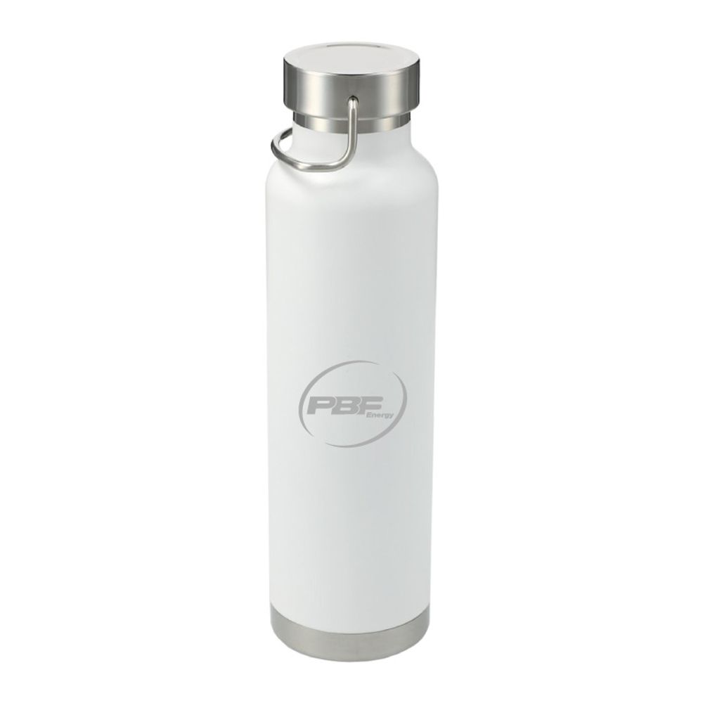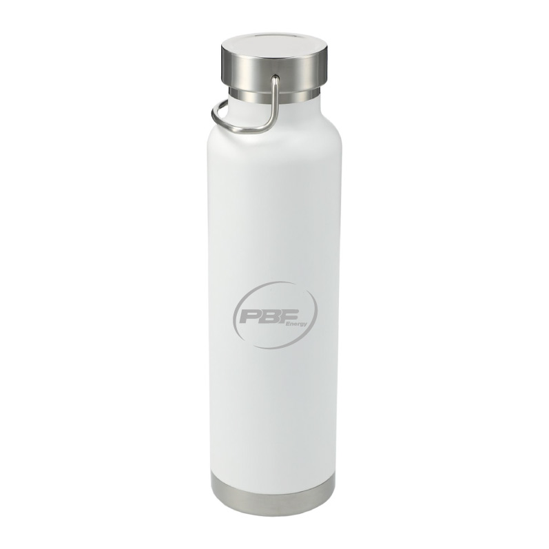 sku: PBF8008The durable Copper Vacuum Insulated Bottle 22oz features double-wall stainless steel vacuum construction and copper insulation to keep beverages hot for 12 hours, or cold for up to 48 hours. The powder-coated exterior is condensation-resistant and features a sturdy steel hand loop for easy transportation. The Thor Copper Vacuum Insulated Bottle 22oz comes with a spill-resistant lid that screws on securely.
